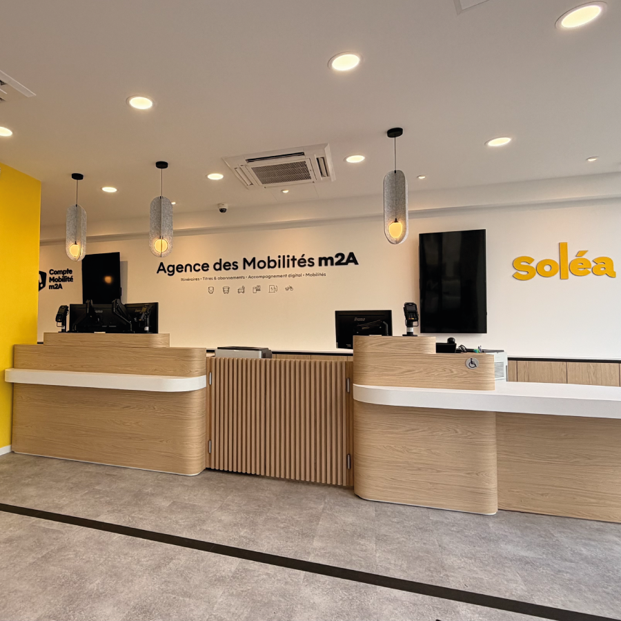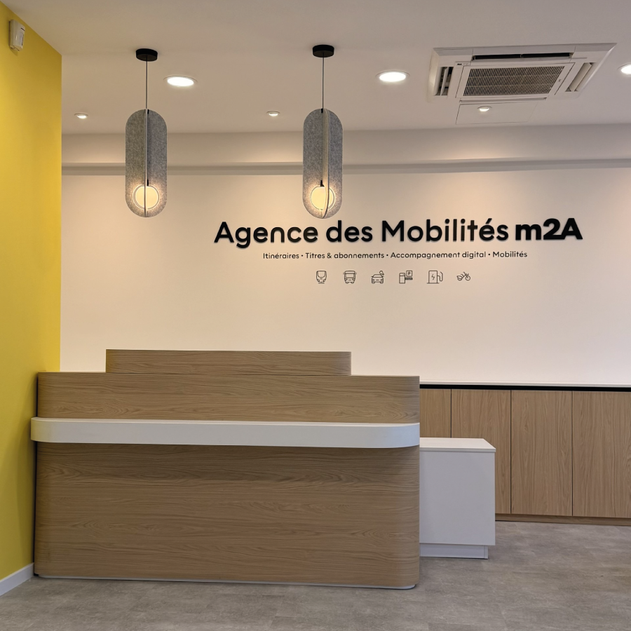 Afin d’offrir aux habitants un lieu plus moderne, plus lisible et plus accueillant, en cohérence avec les usages actuels des mobilités du quotidien, la nouvelle agence permet de s’informer et d’accéder notamment aux services proposés via l’application Compte Mobilité m2A :