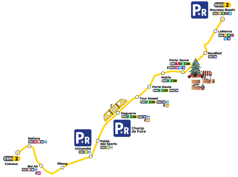 En décembre, les Parkings-Relais (P+R) sont la solution la plus pratique pour rejoindre le centre-ville de Mulhouse sans stress. Stationnez, montez dans le tram… et profitez sereinement des commerces et du marché de Noël !